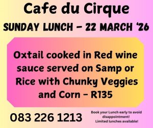 The Café du Cirque, a quaint circus coffee shoppe, has become the meeting place of note for both locals and out-of-towners. As it is on the cycle training route, the weekend early mornings are alive with cyclist from near and far. The menu boasts a selection of delicious meals, presented with a flair all of its own. Full catering and bar facilities are on offer.